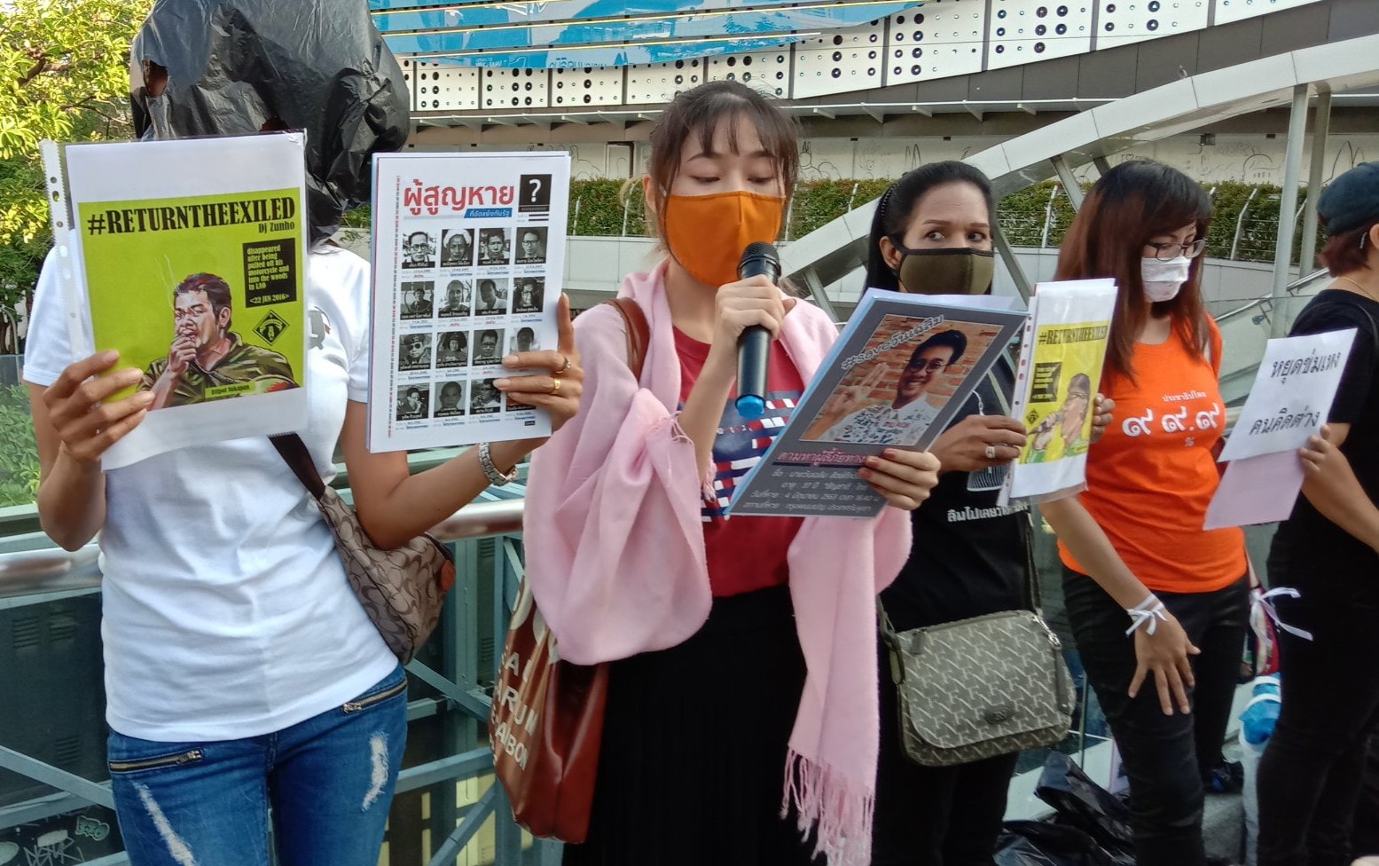 20 มิถุนายน 2563 เวลา 17.00 น. ในโอกาสวันผู้ลี้ภัยสากล คณะประชาชนเพื่ออิสรภาพ จำนวน 20 คนนำโดยโชติศักดิ์ อ่อนสูง รวมตัวกันที่สกายวอร์ค หน้ามาบุญครอง ผู้ร่วมการชุมนุมถือป้ายรูปภาพผู้ลี้ภัยจากการเมืองเผด็จการประเทศไทยในช่วงสองปีที่ผ่านมาซึ่งถูกอุ้มฆ่าจากประเทศลาวและกำพูชา หายตัวไป เป็นจำนวน 9 รายด้วยกัน และมีการแสดงใช้ถุงดำคลุมใบหน้า แสดงให้เห็นถึงการอุ้มฆ่าผู้ลี้ภัยรายล่าสุดนายวันเฉลิม สัตย์ศักดิ์สิทธิ์ ในระหว่างนี้ตำรวจเข้ามาแจ้งข้อการปฏิบัติเพื่อให้ผู้เข้าร่วมการชุมนุมรักษาระยะห่างตามพรก.ฉุกเฉิน