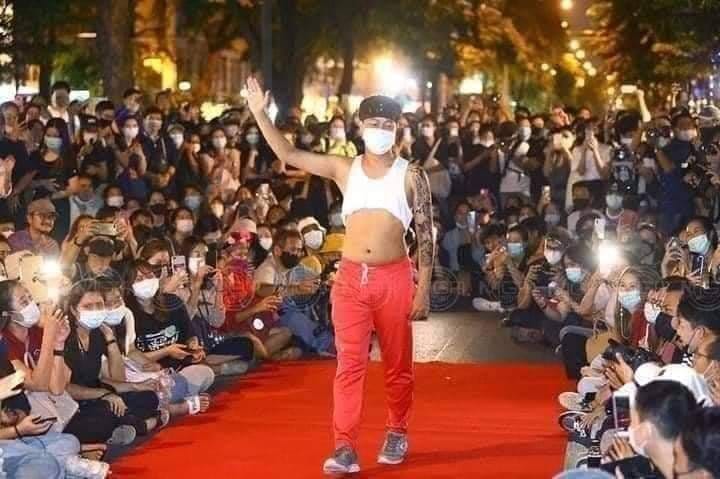 ไม่ใช่การแต่งกายที่ทำให้ต้องสะดุดตาเท่านั้น แต่ทว่าบัดนี้เขาถูกดำเนินคดีหมิ่นพระบรมเดชานุภาพ ตามมาตรา 112 ถึง4คดีจากการปราศรัยในหลายพื้นที่ด้วยกัน