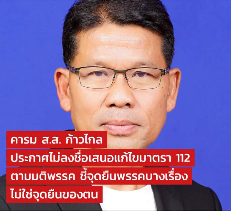 ขอให้พรรคก้าวไกลดำรงไว้ซึ่งจุดยืนและอุดมการของพรรคในการต่อสู้เพื่อยกเลิกมาตรา 112 ให้เป็นผลสำเร็จ