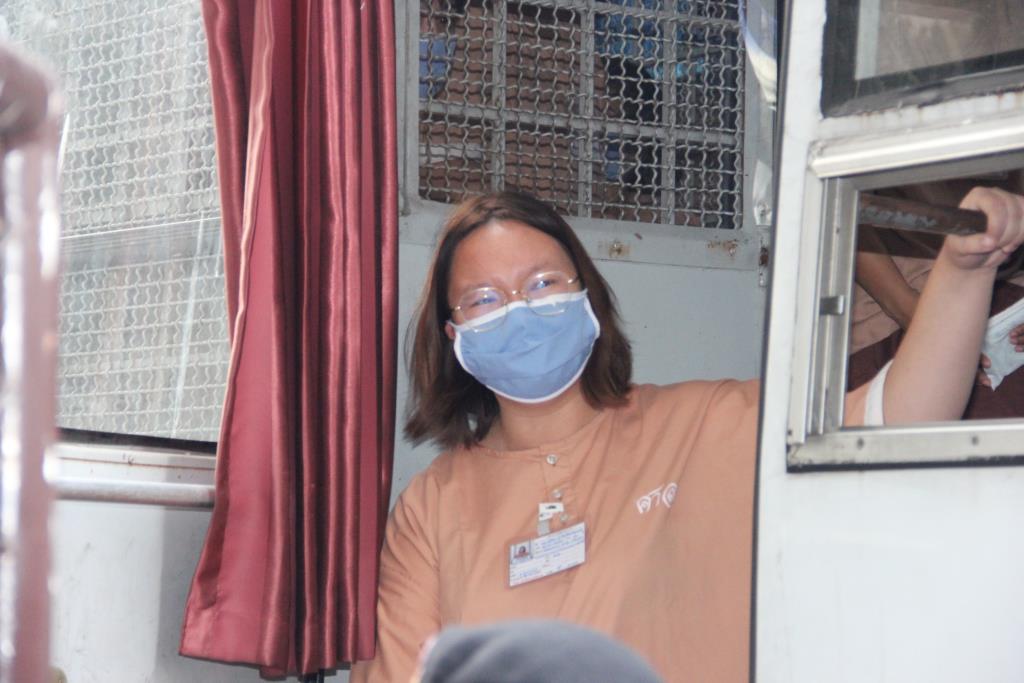 พวกเราทั้งสี่คนได้ขึ้นรถควบคุมนักโทษ แยกออกจากนักโทษคนอื่นมาถึงศาลเวลา 8.30 น. มีเจ้าหน้าราชทัณฑ์หนาตาเป็นพิเศษ ไม่อนุญาตให้ทักทายสื่อมวลชน แต่เพนกวิ๊นชูมือสามนิ้ว ทันทีที่ลงจากรถ พวกเราสี่คนถูกผลักดันให้เข้าไปภายในห้องขังอย่างรวดเร็วเพื่อไม่ให้ผู้สื่อข่าวได้ถ่ายภาพหรือสัมภาษณ์พวกเราได้ มีการตรวจค้นอีกครั้งอย่างละเอียด โดยที่เพนกวิ้น นำสมุดปากกาขึ้นไปยังห้องพิจารณาของศาลได้