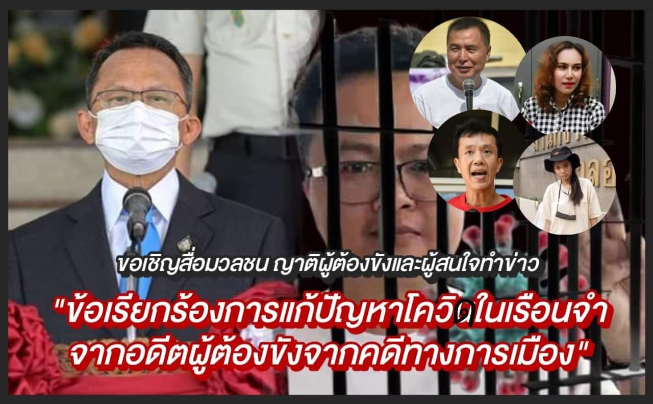 ตามที่รัฐมนตรีกระทรวงยุติธรรมนายสมศักดิ์ เทพสุทิน ได้แถลงข่าวเมื่อวันที่ 17 พค.2564 ระบุถึงสาเหตุของการแพร่ระบาดโควิดในเรือนจำมาจากกลุ่มนักโทษที่ไม่ให้ความร่วมมือการตรวจโควิดเมื่อวันที่ 15 มีนาคม 2564 ซึ่งหมายถึงกลุ่มนักโทษการเมืองจำนวน 7 คนประกอบไปด้วย 1.นายอานนท์ นำภา 2.นายพริษฐ์ ชีวรักษ์ 3.นายภาณุพงษ์ จาดนอก 4.นายปิยะรัฐ จงเทพ 5.นายจตุภัทร์ บุญภัทรรักษา 6 นายชูเกียรติ แสงวงศ์ 7 นายสมยศ พฤกษาเกษมสุข ทางกรมราชทัณฑ์มาตรวจโควิดในเวลาเที่ยงคืนและตีสอง โดยกล่าวโทษไปที่กลุ่มนักโทษดังกล่าวไม่ให้ความร่วมมือการตรวจโควิดจนเป็นสาเหตุการแพร่ระบาดโควิดในเรือนจำนั้น เป็นการให้ข้อมูลที่ไม่ครบถ้วนและไม่ตรงความจริงทั้งหมด เป็นการกลบเกลื่อนปัญหาการแพร่ระบาดโควิด ซึ่งจะทำให้ไม่สามารถแก้ปัญหาการแพร่ระบาดโควิดได้