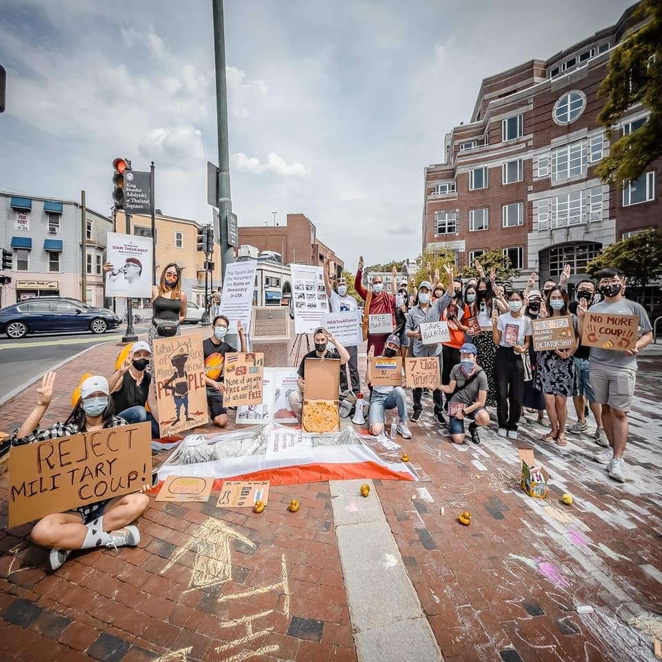 13. ที่สหรัฐอเมริกา เมืองเคมบริดจ์ บริเวณ King Bhumibol Aduljdej Square กลุ่มคนไทยในสหรัฐอเมริกา ประมาณ 30 คน จัดกิจกรรมปราศรัยและกินพิซซ่าล่าเผด็จการ