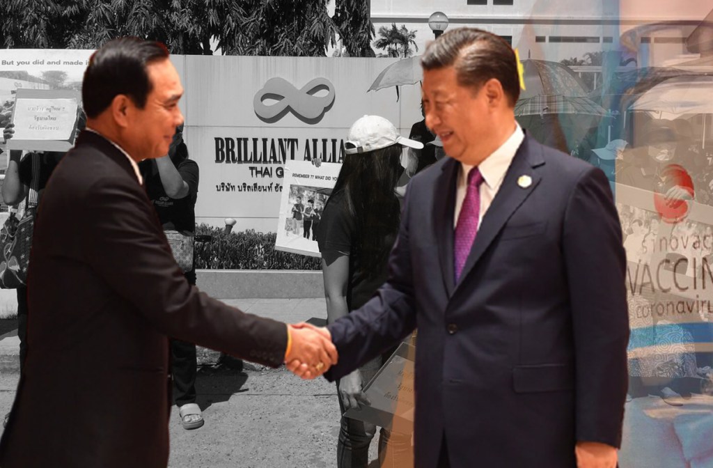 นอกจากนี้ยังประเคนสิทธิพิเศษให้นายทุนจีนเข้ามาลงทุนกดขี่แรงงานไทยและแรงงานต่างด้าว (ระเบียงเศรษฐกิจภาคตะวันออก : EEC) แก้กฎหมายให้ถือครองที่ดินถึง 90 ปี ปล่อยให้นายทุนจีนปิดกิจการ แล้วชักดาบเงินค่าชดเชยตามกฎหมายแรงงาน มาตอนนี้โควิดแพร่ระบาดอย่างหนักแต่รัฐบาลไทย เอาแต่สั่งนำเข้าวัคซีนคุณภาพต่ำจากจีนเข้ามาในราคาแพง มีหมอระดับสูงหลายคนเป็นเซลแมนคอยโฆษณาขายวัคซีนจากจีนให้คนไทย ล่าสุด (6.7.64)รัฐบาลอนุมัติเงิน สั่งซื้อวัคซีน ชิโนแว๊คกว่า 6000 ล้านบาท ไม่มีการขอความช่วยเหลือใดๆจากจีน และจีนก็ไม่ได้หยิบยื่นความช่วยเหลือใดๆมาให้ (ญี่ปุ่นบริจาควัคซีนให้ไทย 1.05 ล้านโดสแล้ว) จนขณะนี้โควิดแพร่ระบาด ฆ่าคนไทยตายไปเป็นใบไม้ร่วง
