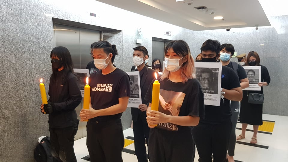 (11 ส.ค.64-13.00น.ศูนย์ราชการ) กลุ่มโมกหลวงนำโดยทานตะวันตัวตุลานนท์ และเจษฎา ศรีปลั่ง กลุ่ม 24 มิถุนาประชาธิปไตยพร้อมตัวแทนครอบครัวผู้ถูกบังคับสูญหาย เข้ายื่นเรื่องร้องเรียนต่อคณะกรรมการสิทธิมนุษยชนแห่งชาติ (กสม.) ผ่าน นายสุชาติ เศรษฐมาลินี และ น.ส.ศยามล ไกรยูรวงศ์ กสม. ขอให้ตรวจสอบ พล.อ.ประยุทธ์ จันทร์โอชา นายกรัฐมนตรี และหน่วยงานความมั่นคงที่อาจเกี่ยวข้องกับการอุ้มหายผู้ลี้ภัยการเมือง 9 คน รวมทั้งขอให้ผลักดันให้สภาผู้แทนราษฎร ผ่านกฎหมายป้องกันปราบรามการทรมานและการอุ้มหาย ร่างฉบับประชาชน