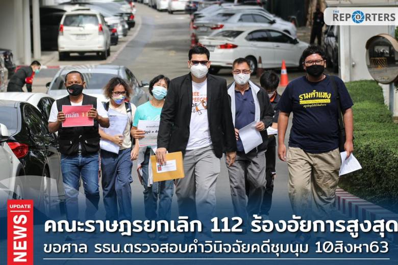 คณะราษฎรยกเลิก 112 ร้องอัยการสูงสุด ขอให้ศาล รธน. ตรวจสอบคำวินิจฉัยคดีชุมนุม 10 สิงหา63 เข้าข่ายล้มล้างการปกครองหรือไม่