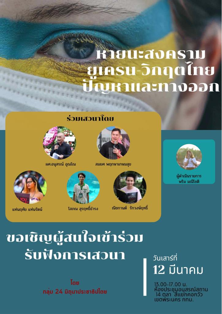 ขอเชิญเข้าร่วมเสวนาวิชาการ เรื่อง “หายนะสงครามยูเครน วิกฤติไทย ปัญหาและทางออกสังคมไทย”