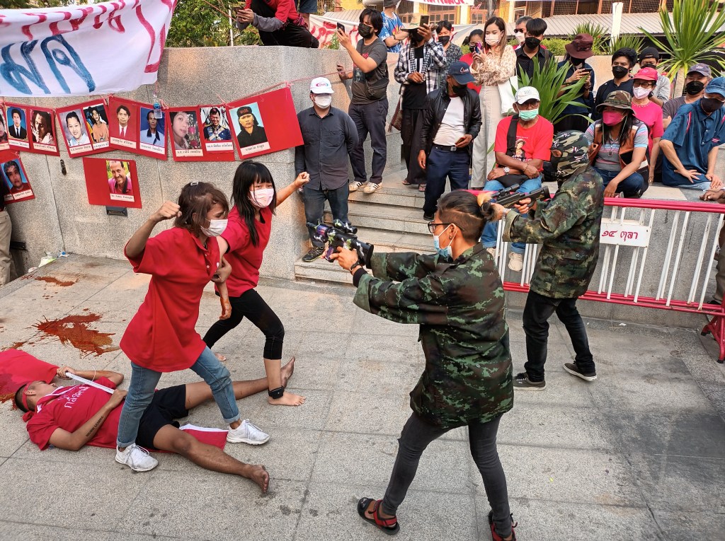 หลังจากนั้นได้มีการแสดงละครที่ปลุกจิตสำนึกประชาธิปไตย ซึ่งมีเยาวชนนักเคลื่อนไหวที่ถูกดำเนินคดี ได้แก่ แซม สาแมท ตะวัน ตัวตุลานนท์ manee olive กฤษติพล ศิริกิตติกุล (โจเซฟ) แทนอุทัย แท่นรัตน์ บุรินทร์ อินติน ที่ถูกดำเนินคดี 112 ในรัฐบาลรัฐประหารของพลเอกประยุทธ์ จันทร์โอชา ร่วมแสดงละครเรื่อง ปิศาจที่ฆาตกรลอยหน้า คนสั่งฆ่าลอยนวลแต่อุดมการประชาธิปไตยส่งต่อมายังคนหนุ่มสาวราษฎรสามนิ้ว