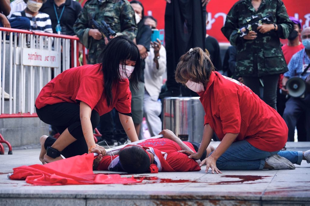 คุณเคยใส่ร้ายป้ายสีประชาชนที่ใส่เสื้อสีแดง เอาผังล้มเจ้ายัดเยียดให้เรา อ้างข้อกล่าวหาว่าเกี่ยวข้องกับสถาบันเบื้องสูงจะไปโค่นล้มทำลาย แล้วคุณก็ทำร้ายเข่นฆ่าเรา แล้ววันนี้คณก็กล่าวหาลูกหลานคนหนุ่มคนสาวในข้อหาแบบเดียวกัน คุณจะให้ผมผลักไสลูกหลานไปให้พวกมึงฆ่าเหมือนฆ่าพวกกู กูทำไม่ได้”