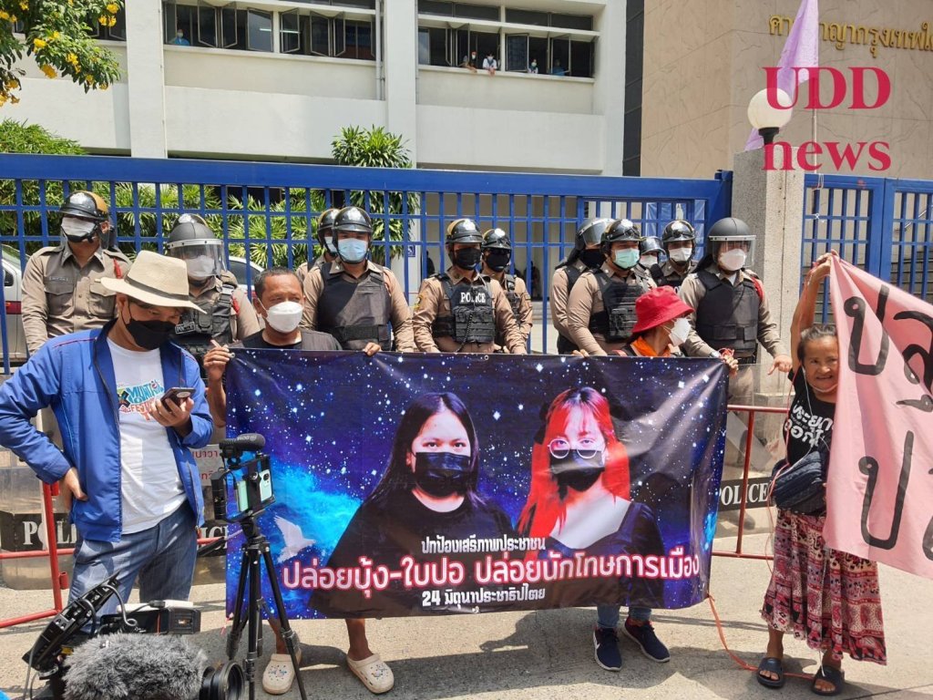 คาร์ม๊อบหน้าศาลอาญากรุงเทพใต้กระหึ่ม เรียกร้องปล่อยตัวบุ้งกับใบปอ และนักโทษการเมืองทุกคน