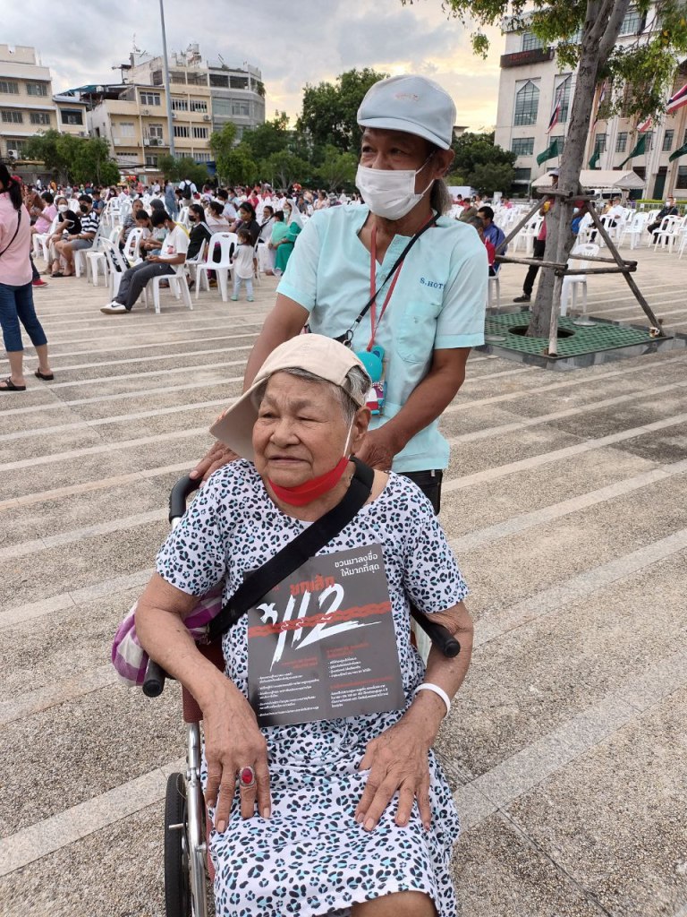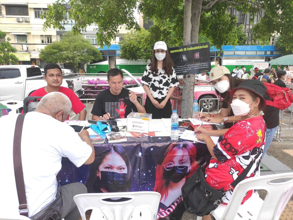 ในช่วงเวลาเดียวกันนี้ คณะราษฎรยกเลิกมาตรา112 นำโดยสมยศ พฤกษาเกษมสุข และชินวัตร จันทร์กระจ่าง หรือไบร์ท แกนนำเครือข่ายคนรุ่นใหม่นนทบุรี ได้มาตั้งโต๊ะ รวบรวมรายชื่อประชาชนเสนอกฎหมายยกเลิกมาตรา 112 มีผู้ลงชื่อกว่า 100 คน ทั้งนี้ นส.กัลยมน สุนันรัตน์หรือมิ้น จากกลุ่มนาดสินปฏิวัติ ได้ชูป้าย ปล่อยนักโทษการเมือง ยกเลิกมาตรา 112 ที่หน้าเวทีปราศรัย ระหว่างที่หงา คาราวานกำลังร้องเพลงลุกขึ้นสู้ เป็นที่น่าสนใจจากผู้มาเข้าร่วมการชุมนุมเป็นอย่างมาก