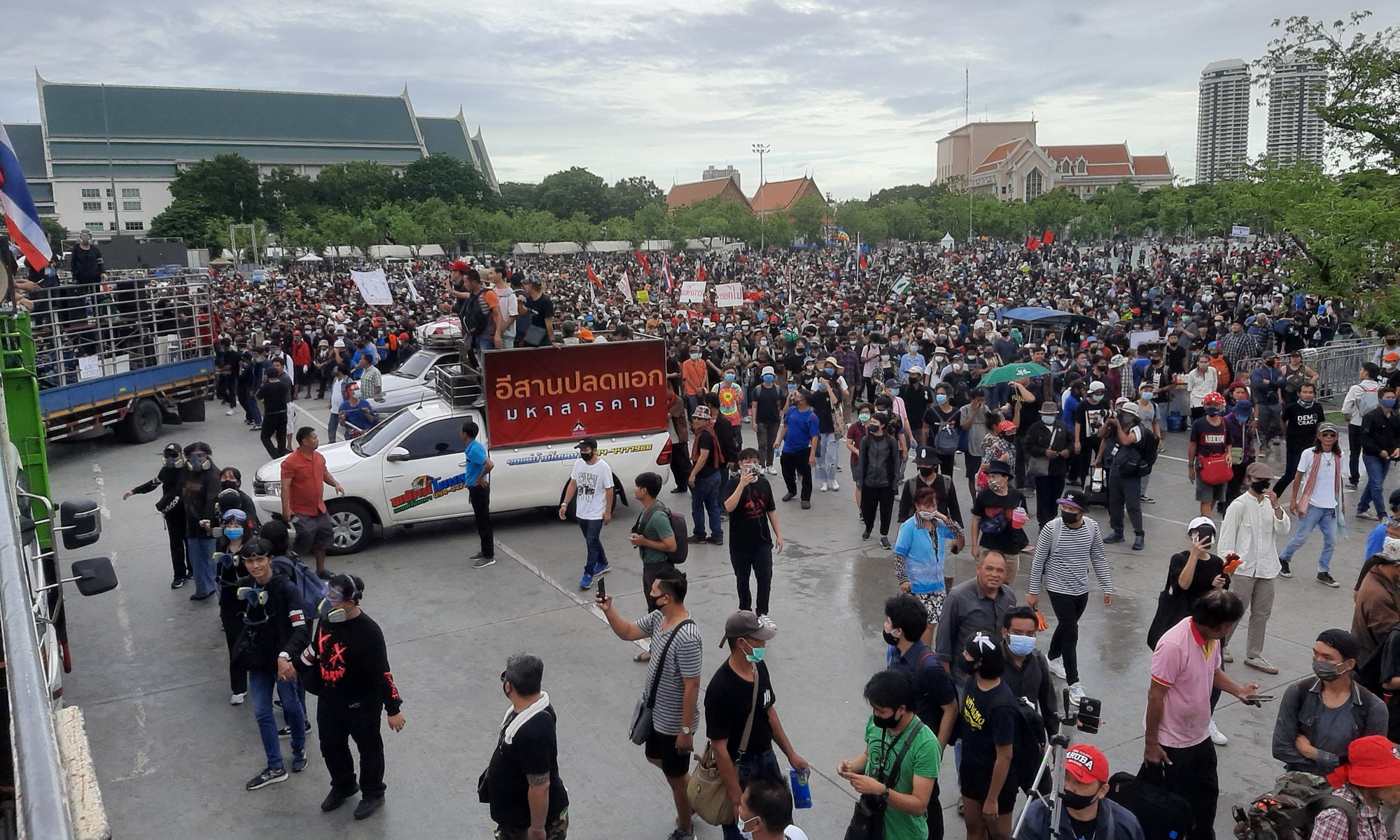 นัดสืบพยานฝ่ายโจทก์ครั้งที่ 11 วันที่ 8 กรกฎาคม 2565 จำเลยที่ 1 พริษฐ์ ชีวารักษ์ 2. อานนท์ นำภา 4 สมยศ พฤกษาเกษมสุข 5.ปนัสยา สิทธิจิรวัฒนกุล 6.ภาณุพงษ์ จาดนอก 7.จตุภัทร์ บุญภัทรรักษา ยื่นคำร้องขอให้ศาลอาญาออกหมายเรียกพยานเอกสารเป็นครั้งที่ 5 เหตุศาลแพ่งและอุทธรณ์ไม่ส่งคำพิพากษาคดีกระทรวงการคลังฟ้อง ร.7 อ้างเหตุหมายศาลอาญามาถึงหลังกำหนดวันที่ศาลขอให้ส่งเอกสารจึงเป็นเหตุขัดข้อง อีกทั้งศาลอุทธรณ์ยังอ้าง ผอ.สำนักงานไม่มีอำนาจอนุมัติเอกสารที่ร้องขอได้ ในขณะที่จำเลยที่ 4 นายสมยศ พฤกษาเกษมสุขยืนยันที่จะให้ศาลออกหมายเรียกตารางการบินเดินทางเข้าออกประเทศไทยของกษัตริย์รัชกาลที่ 10 เพื่อใช้ในการต่อสู้คดียืนยันว่าการปราศรัยของตนเองในวันที่ 19 กันยายน 2565 เป็นเรื่องจริงไม่ใช่เรื่องเท็จ เพราะฝ่ายโจทก์ ฟ้องว่า สิ่งที่ตนได้ปราศรัยในคดีนี้ไม่เป็นความจริง ซึ่งเอกสารดังกล่าวเป็นพยานเอกสรอยู่ในครอบครองของบุคคลภายนอก ไม่สามารถนำมาได้ด้วยตนเองซึ่งพยานเอกสารดังกล่าวเกี่ยวข้องกับข้อเท็จจริงในคดีนี้ต้องใช้ในการถามค้านพยานบุคคลของโจทก์