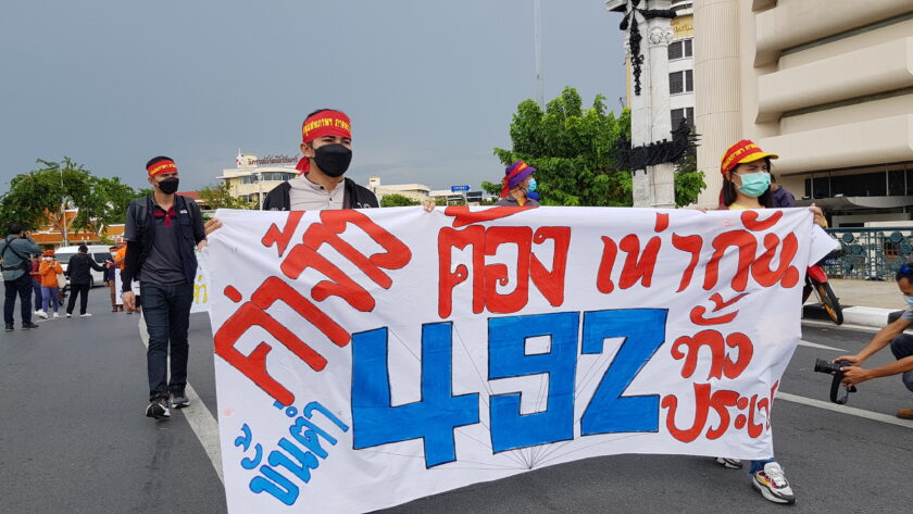 ตามที่พรรคพลังประชารัฐหาเสียงไว้เมื่อปี 2562ว่าจะเพิ่มค่าจ้างขั้นต่ำเป็นวันละ 425 บาท หรือเพิ่มขึ้นเพียง 20 เปอร์เซ็นต์ แต่รัฐบาลประยุทธ์กลับปลิ้นปล้อนไม่ทำตามที่ได้หาเสียงไว้ รัฐบาลประยุทธ์ อ้างว่า การเพิ่มค่าจ้างขั้นต่ำวันละ 425 บาทตามที่เคยหาเสียงไว้ ทำไม่ได้ เพราะจะไปกระทบต่อการประกอบการธุรกิจ ซึ่งไม่เป็นความจริง เพราะในสมัยรัฐบาลยิ่งลักษณ์เพิ่มค่าจ้างขั้นต่ำวันละ 300 บาทหรือเพิ่มขึ้น 39.53 เปอร์เซ็นต์ในปี 2556 ปรากฏว่า อัตราการขยายตัวทางเศรษฐกิจพุ่งสูงถึง 6.5 เปอร์เซ็นต์ ทั้งๆที่ในเวลานั้นประเทศไทยได้รับผลกระทบจากอุทกภัยอย่างรุนแรง เพราะการเพิ่มค่าจ้างขั้นต่ำให้สูงขึ้นเป็นการเพิ่มอำนาจซื้อของประชาชน ไม่เพียงแต่ช่วยให้ผู้ใช้แรงงานพอจะลืมต้าอ้าปากขึ้นมาได้บ้างแต่ยังเป็นการกระตุ้นการบริโภคที่ช่วยให้เศรษฐกิจขยายตัวตามไปด้วย