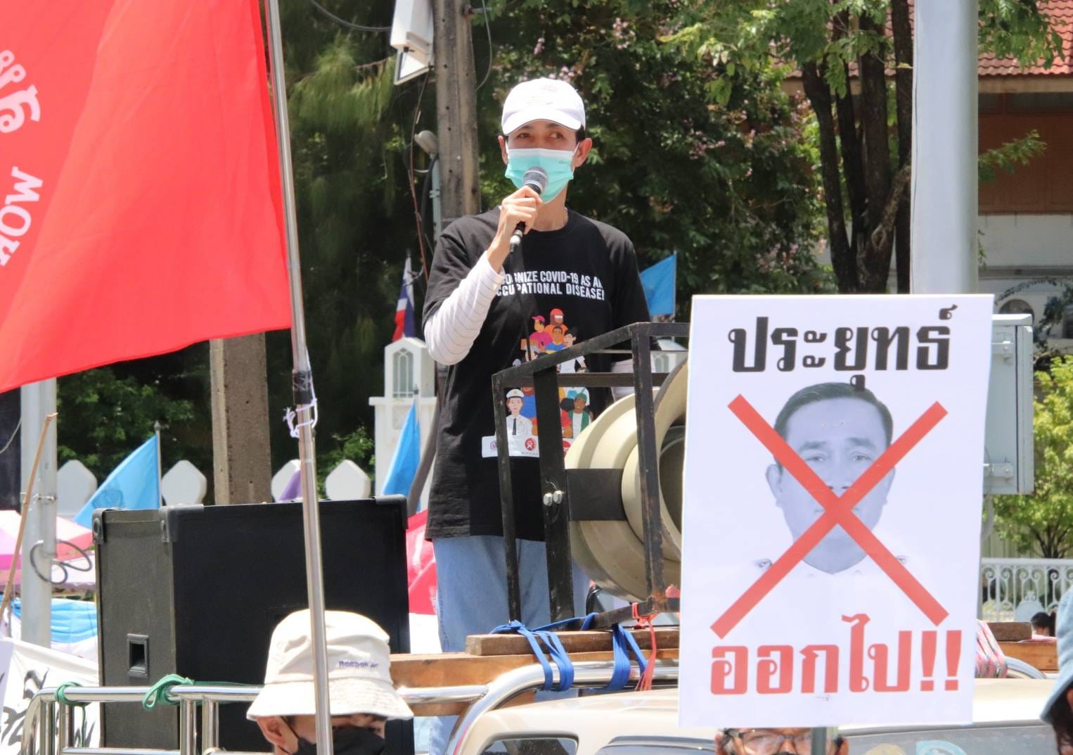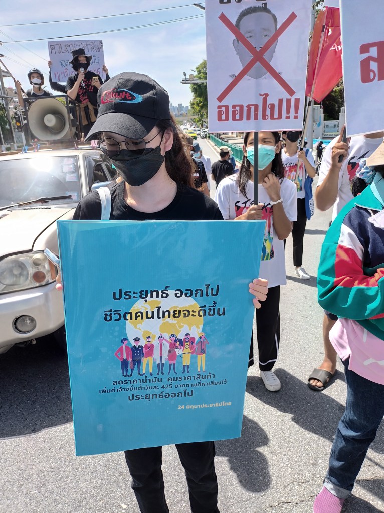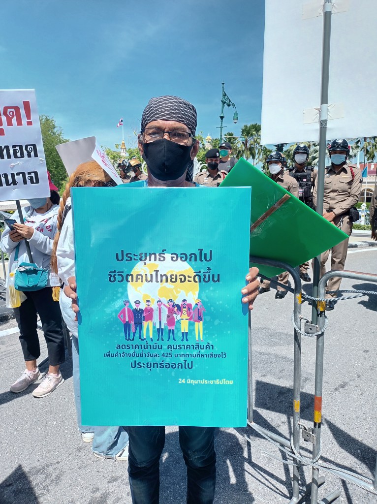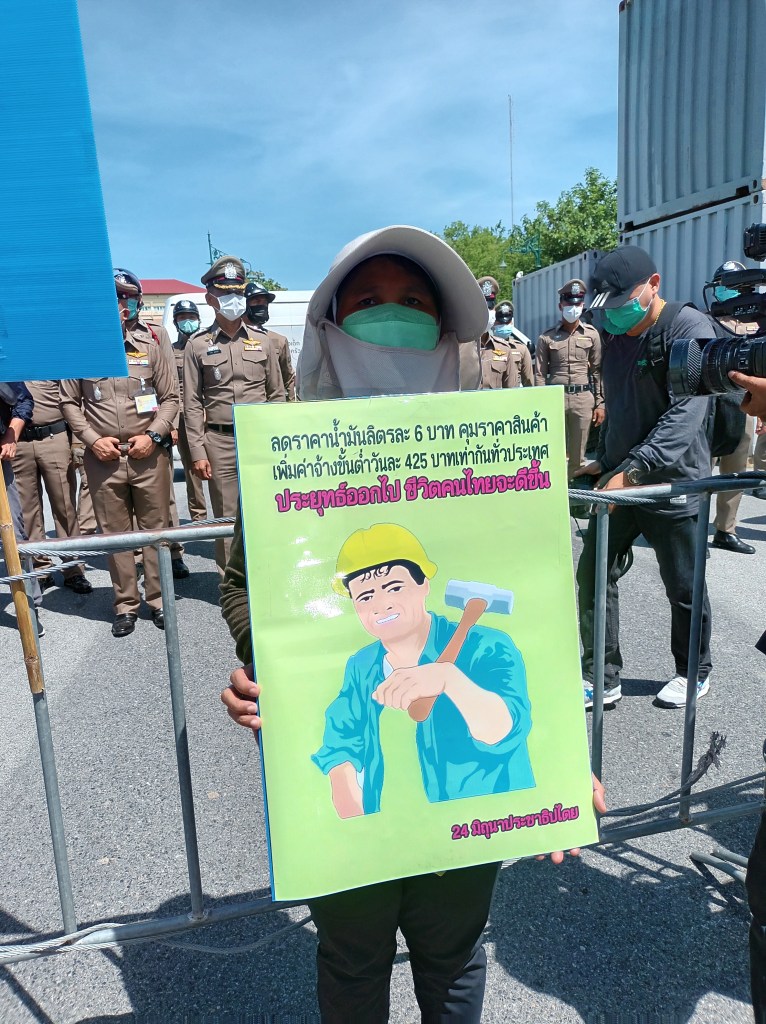 ม็อบแรงงานขอลดราคาน้ำมัน 6 บาท ทวงค่าจ้างขั้นต่ำ 425 บาท ไล่ประยุทธ์พ้นจากตำแหน่ง