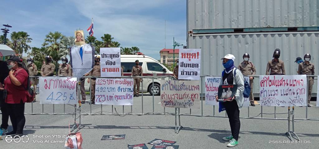 (23 สค.65) รัฐบาล ผู้ชุมนุมเครือข่ายแรงงานเพื่อสิทธิประชาชน นำโดยธนพร วิจันทร์ เซีย จำปาทองและสมยศ พฤกษาเกษมสุข มาชุมนุมที่บริเวณเชิงสะพานชมัยมรุเชฐ ทำเนียบรัฐบาล มีการปราศรัยโจมตีรัฐบาลล้มเหลวในการแก้ไขปัญหาความเดือดร้อนของผู้ใช้แรงงาน ปล่อยให้สินค้ามีราคาแพง กดค่าจ้างให้ต่ำ สร้างความทุกข์ยากเดือดร้อนให้กับประชาชน
