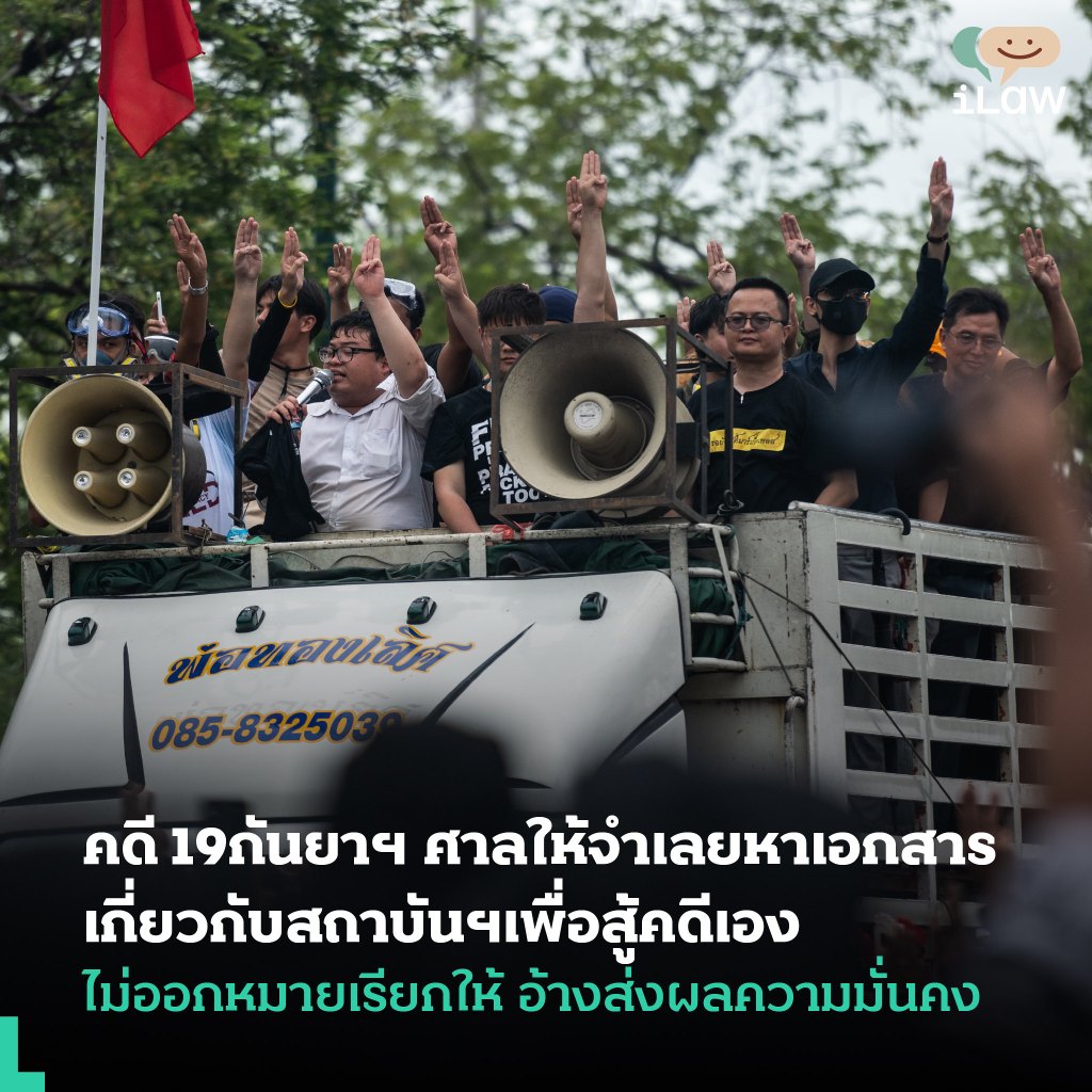ในวันนัดสืบพยานครั้งที่ 14 วันที่ 21 ตุลาคม2565 ที่ห้อง 704มี ตัวแทนคณะมนตรีสหประชาชาติด้านสิทธิมนุษยชนและทูตหลายประเทศมาร่วมฟังการสืบพยานฝ่ายโจทก์ในวันนี้ ฝ่ายจำเลย 14 คน มาศาล ขอพิจารณาลับหลัง 7 คน จำเลยที่ 10 ไม่มาศาล ฝ่ายจำเลยยืนกรานได้ยื่นคำร้องเป็นครั้งที่ 8 ขอให้ศาลออกหมายเรียกพยานเอกสารครั้งที่ 8 ยืนกรานว่าศาลมีอำนาจหน้าที่ออกหมายเรียกพยานเอกสารตามมาตรา 231 ประมวลกฎหมายวิธีพิจารณาความอาญา และประมวลกฎหมายวิธิพิจารณาความแพ่งมาตรา 92 เพราะเอกสารตารางการบินกษํตริย์รัชกาลที่ 10 และงบประมาณราชการส่วนพระองค์อยู่ในการครองครองของบุคคลภายนอก เป็นเอกสารเกี่ยวข้องกับข้อเท็จจริงในคดีนี้ มีความจำเป็นในการต่อสู้คดีของจำเลย เพราะถูกกล่าวหาว่า การปราศรัยของจำเลยเป็นการกล่าวเท็จจึงต้องใช้พยานเอกสารดังกล่าวยืนยันว่าการปราศรัยของจำเลยเป็นการกล่าวตามความเป็นจริง นำมาใช้ในการถามค้านพยานบุคคลของฝ่ายโจทก์ ซึ่งเป็นสิทธิพื้นฐานในกระบวนการยุติธรรม
