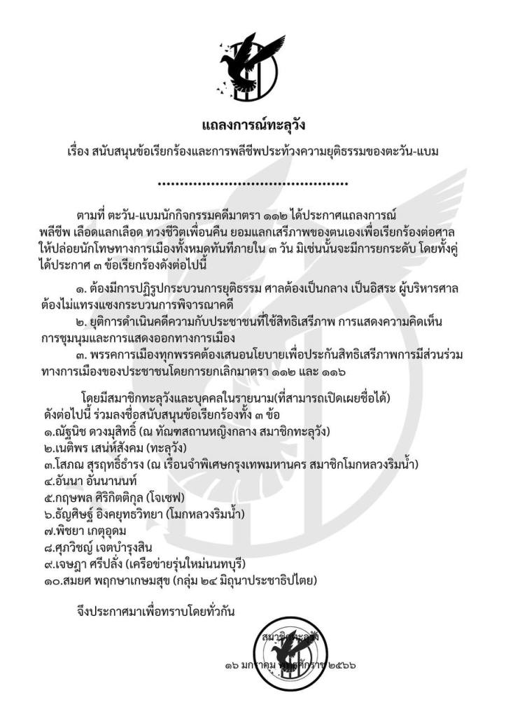 ขอสดุดีวีรกรรมการต่อสู้และการเสียสละของอรวรรณ ภู่พงศ์ หรือแบม และตะวัน ตัวตุลานนท์