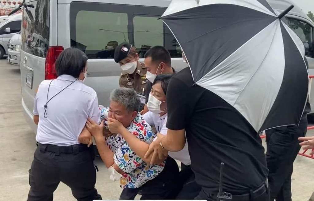 13.3.66 ประยุทธ์ จันทร์โอชา พรรครวมไทยสร้างชาติ (รทสช.) เดินทางไปศาลาประชาคมบ้านโป่ง ราชบุรี เวลา 11.30 น.มีสุภาพสตรีสูงวัย(63ปี)ยืนดักพบประยุทธ์ ตะโกนตำหนิการทำงานของประยุทธ์ แต่เจอตำรวจ เข้าสกัด ด้วยการกระชากหญิงสูงอายุเพื่อนำตัวออกไป ยังซอกรถตู้ และเอาร่มกางปิดบัง เพื่อไม่ให้ผู้สื่อข่าวบันทึกภาพ และบางช่วงได้มีการเอามือปิดปาก-ใบหน้า ไม่ให้ตะโกนใส่ขบวนรถนายกรัฐมนตรี สตรีสูงวัยคนนี้ได้รับบาดเจ็บที่ข้อเท้า-แขน ตำรวจนำตัวไปที่สภอ.บ้านโป่งตั้งข้อหา ฝ่าฝืน-ขัดขวาง คำสั่งเจ้าหน้าที่ตำรวจ
