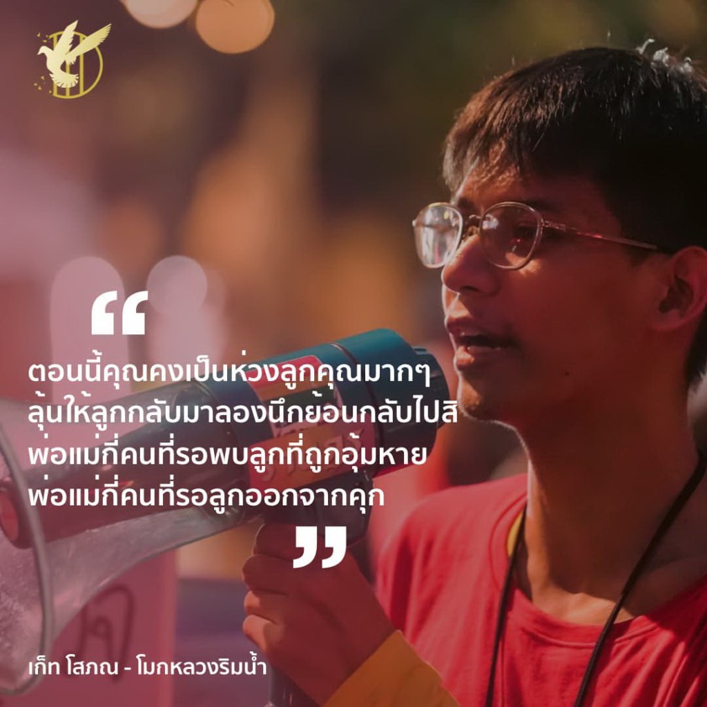 จากที่เคยเห็นหมอเก็ทในชุดเสื้อกาวน์ยาวสีขาวทำงานในห้องรังสีของโรงพยาบาล กลายมาเป็นนักโทษการเมืองในชุดกางเกงขาสั้นสีน้ำตาลแก่และเสื้อกุยเฮงสีน้ำตาลอ่อน ขาสองข้างถูกพันธนาการด้วยกุญแจข้อเท้า ถูกคุมตัวเข้าห้องพิจารณาคดีตามความผิดมาตรา 112 เขาปฏิเสธกระบวนการพิจารณาคดีของผู้พพิพากษาด้วยการ นั่งหันหลังให้ผู้พิพากษาตลอดทั้งวัน และเมื่อเสร็จการพิจารณาคดี เก็ทได้ลุกขึ้นแถลงทวงถามความคืบหน้าของ 2 ข้อเรียกร้องเกี่ยวกับสิทธิประกันตัวและให้ยุติการดำเนินคดี ม.112 ทั้งหมด