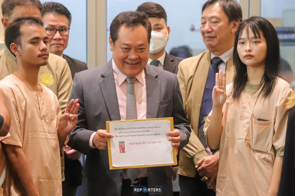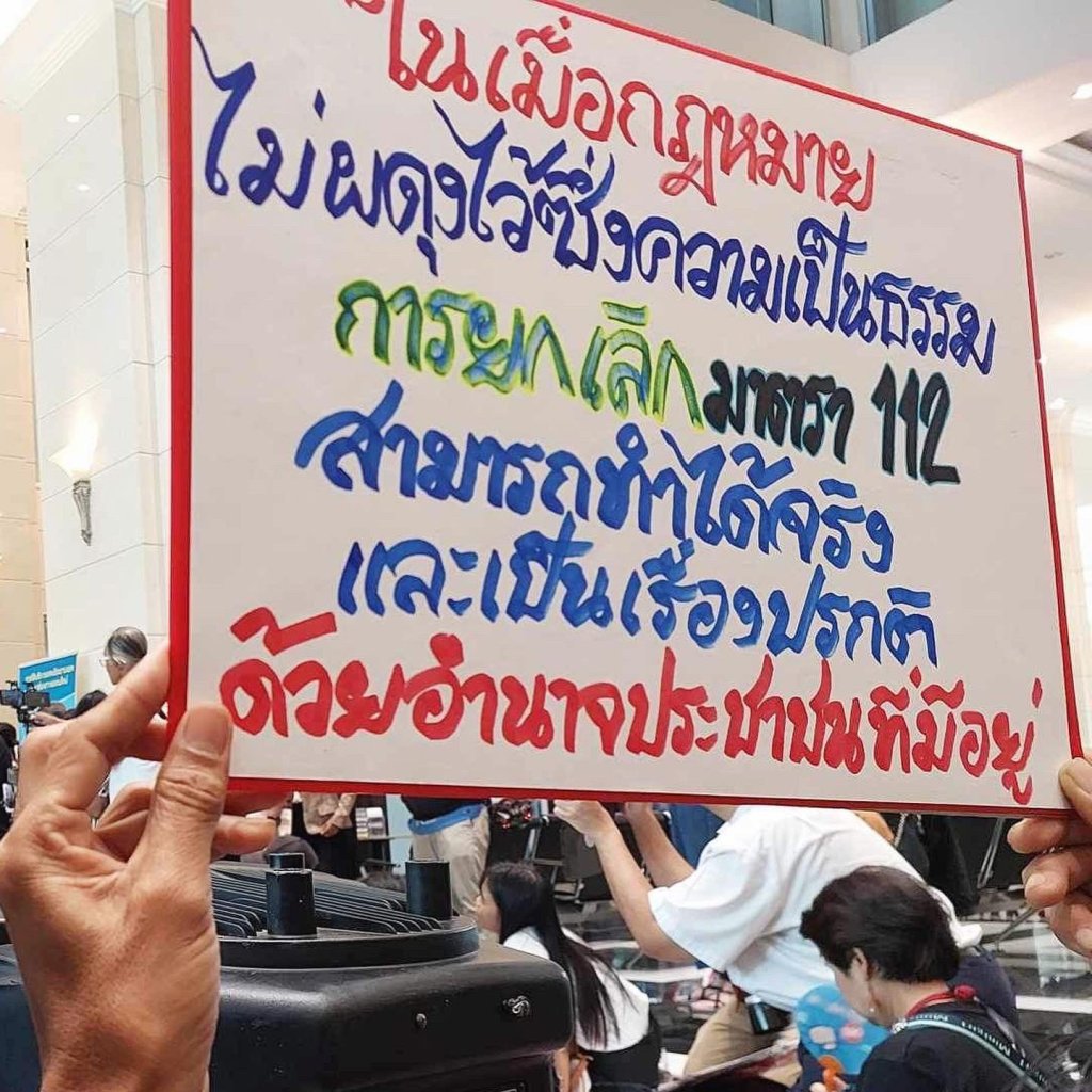 ธนพร วิจันทร์ แกนนำ ครย.112 กล่าวว่า ขอเรียกร้องต่อรัฐมนตรีกระทรวงยุติธรรมนายทวี สอดส่อง ตามที่พรรคเพื่อไทยเคยให้สัญญาไว้ว่าจะเปิดพื้นที่ให้สภาผู้แทนราษฎรเป็นพื้นที่ปลอดภัยต่อการแสดงความคิดเห็น จึงขอให้กระทรวงดำเนินการให้มีการพูดคุยในประเด็นการแก้ไขหรือยกเลิกมาตรา 112 เป็นการสร้างบรรยากาศประชาธิปไตยให้ดีขึ้น