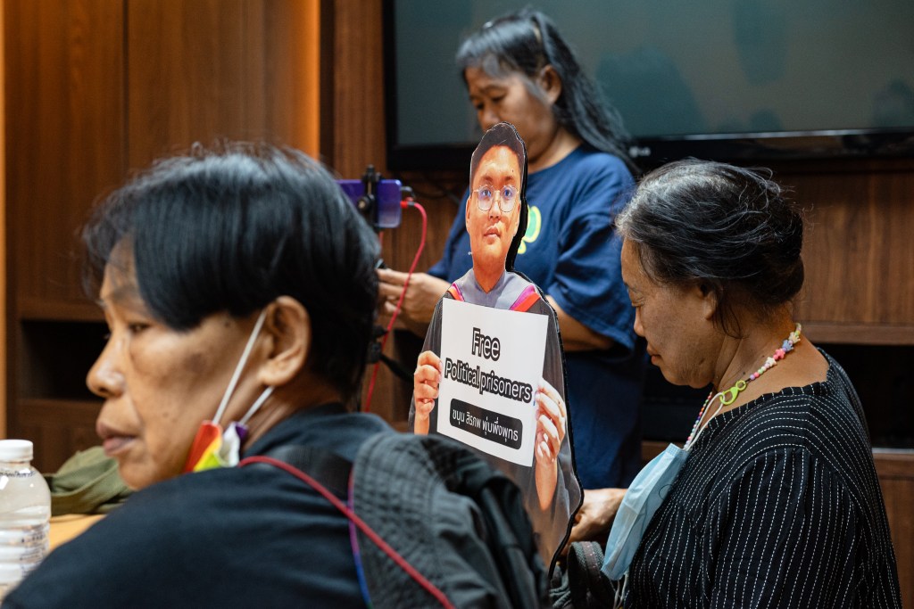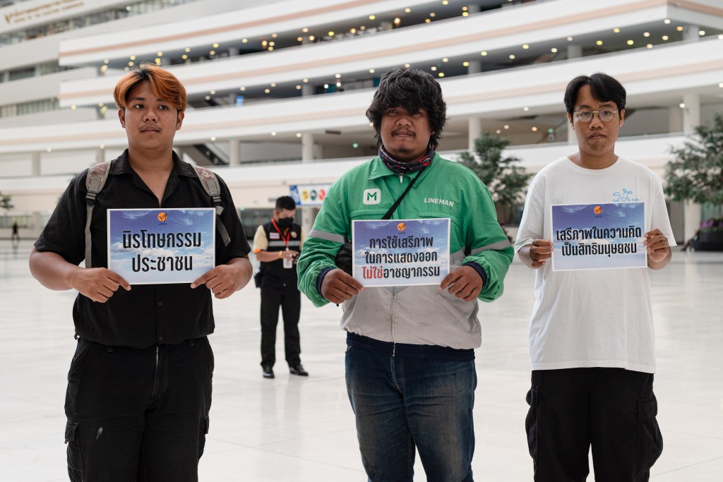 โมกหลวงริมน้ำ และกลุ่ม 24 มิถุนาประชาธิปไตย โดย ธนภัทร ธรรมโชติ ธิติมา ทองศรี แอนนา แอนนานนท์ สมยศ พฤกษาเกษมสุข พร้อมด้วยมวลชน 15 คน รวมตัวกันกันที่ห้องโถง ศูนย์ราชการอาคารบี ถือป้ายข้อความคืนสิทธิประกันตัว พร้อมด้วยรูปภาพสิรภพ พุ่มพึ่งพุทธ หรือ ขนุน เข้าแถวหน้ากระดานเดินกลางสนามพร้อมตะโกน จากแม่น้ำถึงขุนเขาปล่อยเพื่อนเราเดี๋ยวนี้ ถึงชั้น 6 สำนักงานคณะกรรมการสิทธิมนุษยชนแห่งชาติ โดยมี ผศ.สุชาติ เศรษฐมาลินี และ ปิติกาญจน์ สิทธิเดช พร้อมด้วยคณะมาร่วมพูดคุยและรับหนังสือ ทั้งนี้มีการร้องเรียนในกรณีที่ผู้ต้องขังมาตรา 112 ไม่ได้รับสิทธิประกันตัวและการนำไปคุมขังในที่ยากลำบากรวมกับนักโทษคดีร้ายแรงเป็นการทรมานระหว่างการพิจารณาคดี