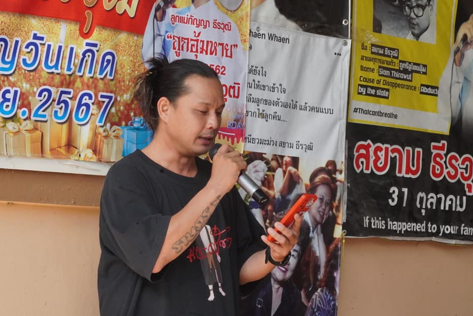 (3พย.67) ครอบครัวสยาม ธีรวุฒิ จัดงานวันเกิดครบ 39 ปี ให้สยาม ธีรวุฒิหนึ่งในผู้ลี้ภัยทางการเมืองที่มีหมายจับข้อหามาตรา 112 จากการแสดงละครเวที ‘เจ้าสาวหมาป่า’ โดยถูกบังคับสูญหายเมื่อปี 2562 พร้อมกับ ชูชีพ ชีวะสุทธิ์ หรือลุงสนามหลวง และกฤษณะ ทัพไทย หรือสหายยังบลัด ซึ่งทั้งสามคนเป็นผู้ลี้ภัยการเมืองถูกอุ้มหายตัวไปในช่วงพิธีพระบรมราชาภิเษก เมื่อวันที่ 8 พฤษภาคม 2562 ครอบครัวทำบุญที่บ้านในซอยนิศาชล ต.อ้อมน้อย สมุทรสาคร โดยมี สส.พรรคประชาชน จ.สมุทรสาคร นายนายศิริโรจน์ ธนิกกุล นายสมยศ พฤกษาเกษมสุข และคณะกลุ่ม 24 มิถุนาประชาธิปไตย นายอาเล็กซ์ โชคพฤกษ์ ศิลปินราษฎร นายนาคิตะ เกิดนาค นายชนะศึก ชนะศึก สมเชื้อเวียง กลุ่มสังคมนิยมนิยมแรงงาน ร่วมพิธีทำบุญและในเวลา 12.00 น. มีการเปิดเพลงที่ขับร้องโดยสยาม ธีรวุฒิ และการอ่านบทกวีรำลึก