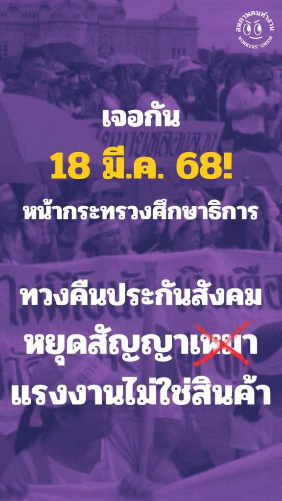รายงานความคืบหน้าจากเพจ สมาพันธ์ธุรการโรงเรียนภาคอีสานยืนยัน ” ทวงคืนประกันสังคม หยุดสัญญาเหมา แรงงานไม่ใช่สินค้า ” นัดหมายครูธุรการทั่วประเทศชุมนุมครั้งใหญ่วันที่ 18 มีนาคม 2568 ที่หน้ากระทรวงศึกษาธิการ