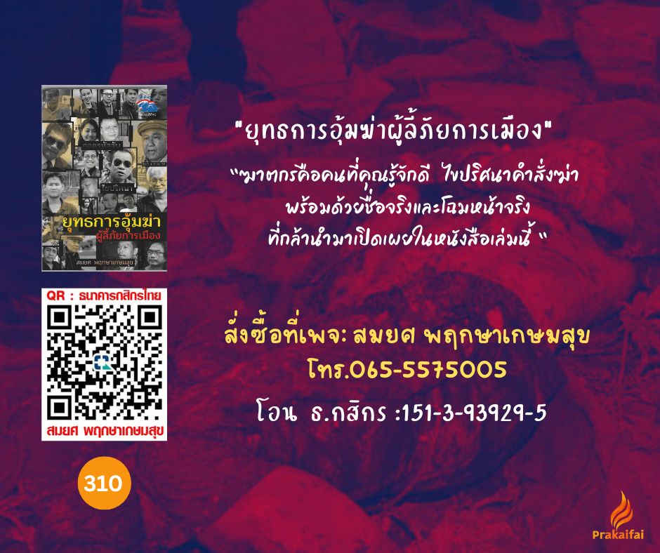 สนใจแจ้งการสั่งซื้อ ในช่องคอมเมนต์หรือเพจ:สมยศ พฤกษาเกษมสุข ราคา 310 บาท โอนเงินธนาคารกสิกรไทย 151-3-93929-5 หรือสแกน QR Code ส่งสลิป และแจ้งชื่อที่อยู่สำหรับจัดส่งมาที่ Inbox : สมยศ พฤกษาเกษมสุข เก็บเงินปลายทาง 330 บาท Email มาที่ editor@prakaifai.com หรือโทร 065-5575005