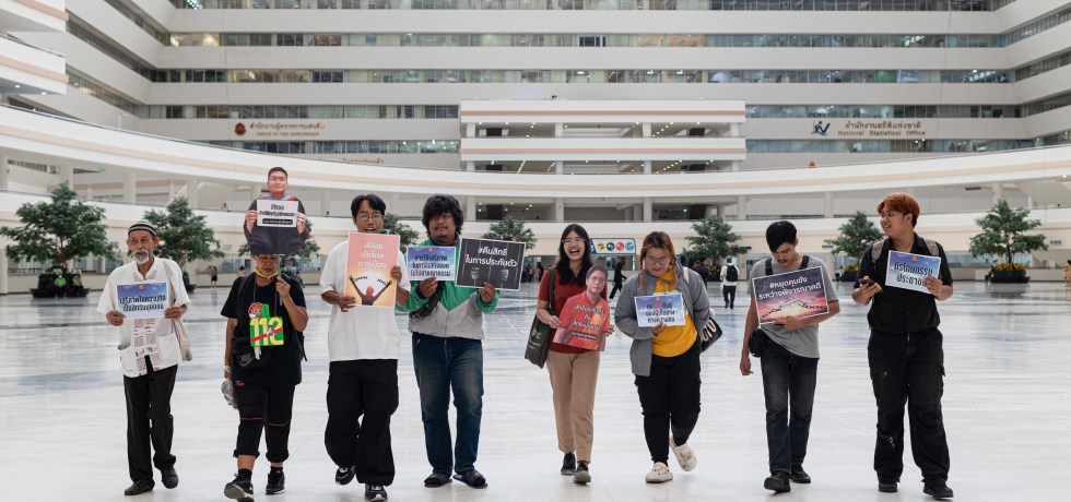 • นาทีแผ่นดินไหว ขณะที่ 19 องค์กรสิทธิมนุษยชนส่องไฟฉายที่ตัวอาคารกระทรวงยุติธรรม