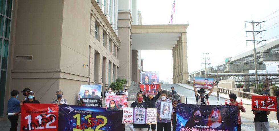 กระบวนการยุติธรรมคาร์ม๊อบหน้าศาลอาญากรุงเทพใต้กระหึ่ม เรียกร้องปล่อยตัวบุ้งกับใบปอ และนักโทษการเมืองทุกคน
