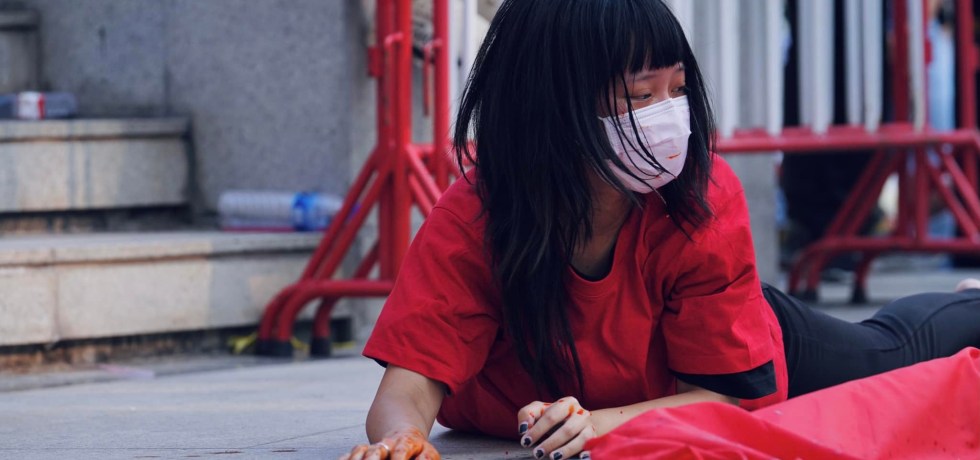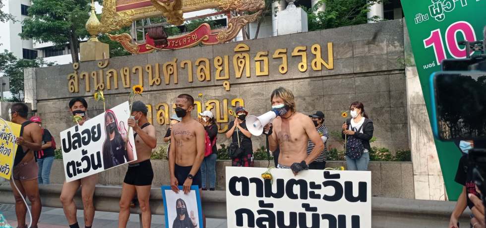 แก้ผ้าหน้าศาลอาญาให้ปล่อยนักโทษการเมือง ตะวันอดข้าวขอสิทธิประกันตัว